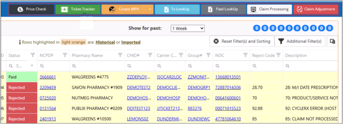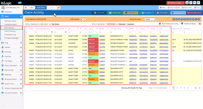 When you go to the Claim Activity tab, the live real time window updates as claims are adjudicated, showing claim status, such as paid, rejected, or reversed. This negates the need of waiting 24 hours for data refreshes.